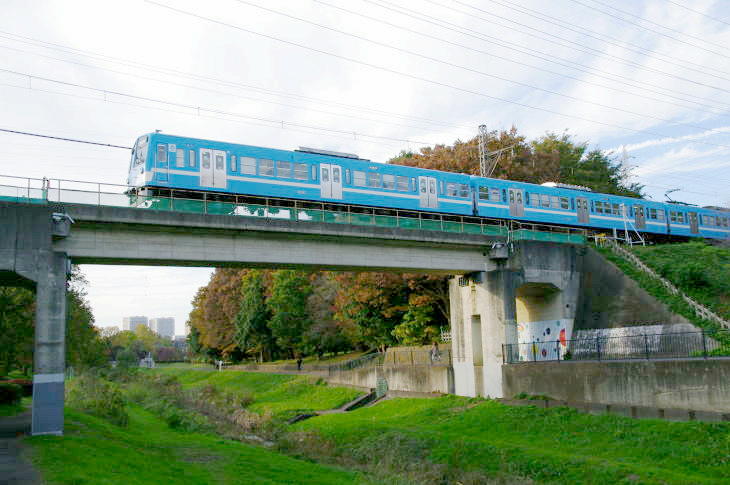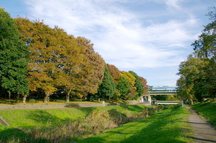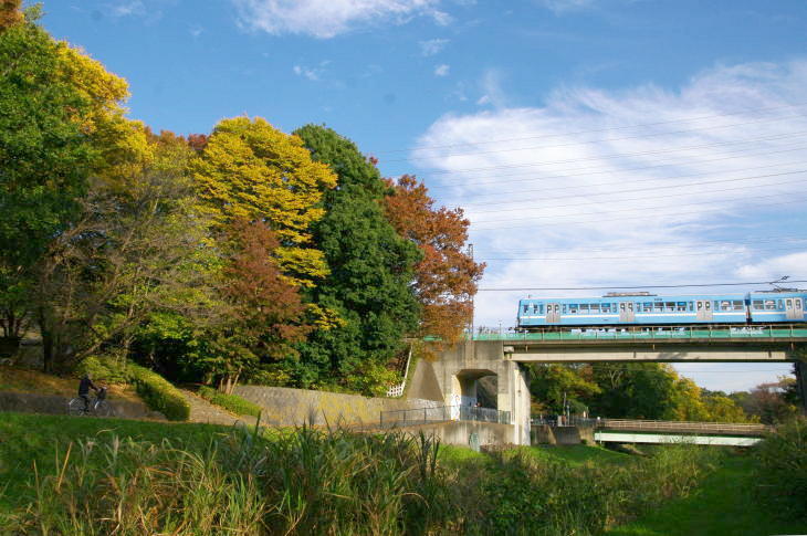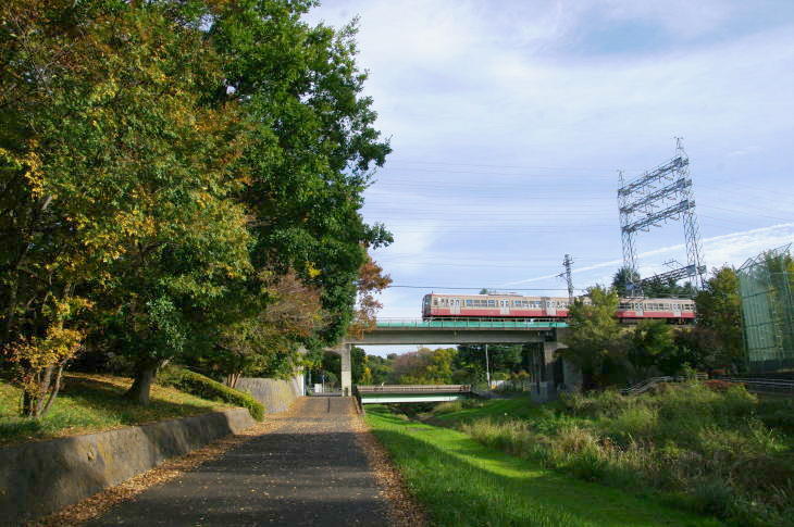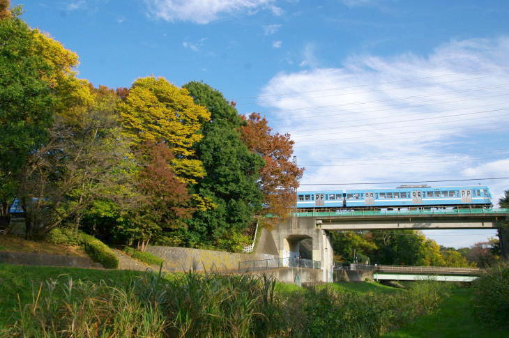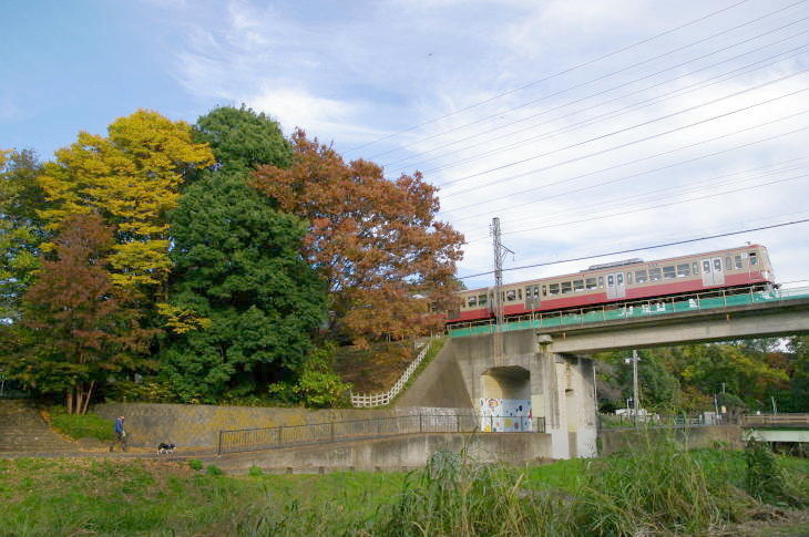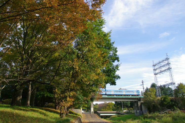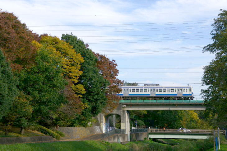 武蔵野公園は、野川に沿って残る草原や雑木林を配した野趣に富んだ公園で、公園の東を西武多摩川線の二枚橋橋梁があります。 令和7年11月12日に訪問しました。 この日は、赤電塗装車、近江鉄道色、伊豆箱根鉄道駿豆線色が活躍していました。
